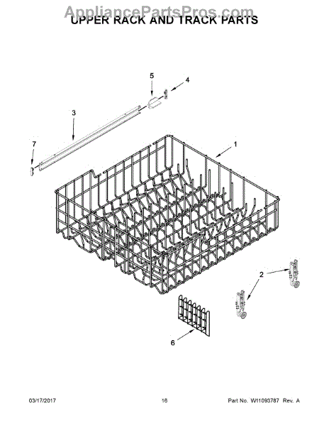 The Upper Dishrack Rail is an OEM replacement part for Whirlpool dishwashers. It guides upper racks in and out for easy access to dishes.