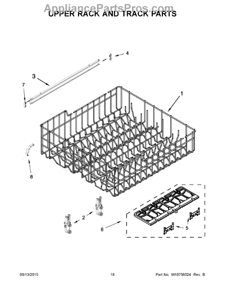 Parts for Whirlpool WDF520PADM2: 10 - Upper Rack And Track Parts
