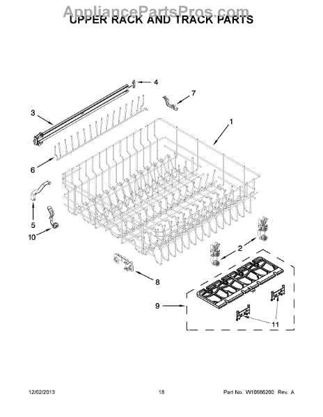 Parts for Whirlpool WDF730PAYW7: 10 - Upper Rack And Track Parts
