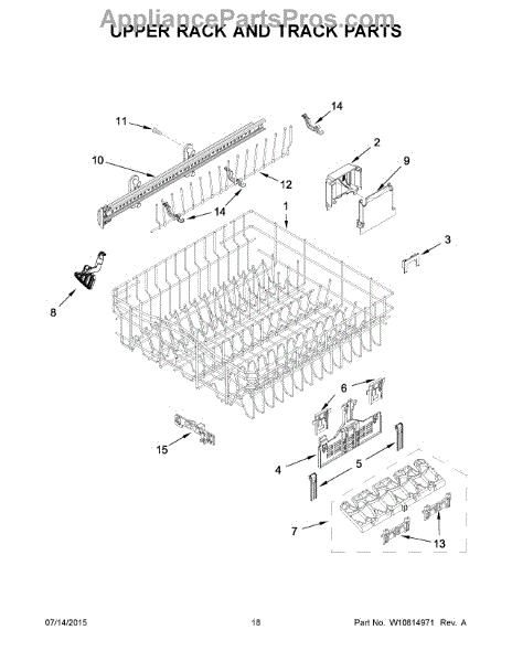 Parts for Whirlpool WDF760SADM2: 10 - Upper Rack And Track Parts