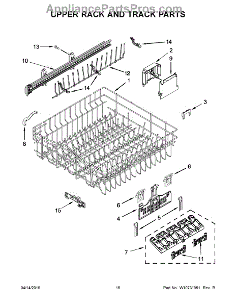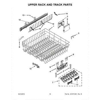 Upper dish rack assembly for dishwashers. Holds glasses, cups, and small items on the top level. Replace if cracked, warped, rusted, or deteriorating.