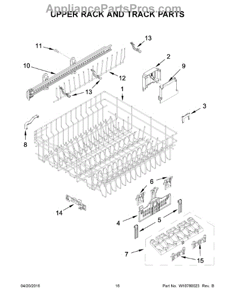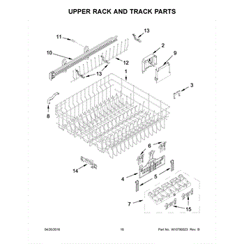 The Upper Dish Rack is an OEM replacement part for Whirlpool dishwashers. Located on the upper level inside the tub, it provides an area for washing smaller dishes, utensils, and glasses.