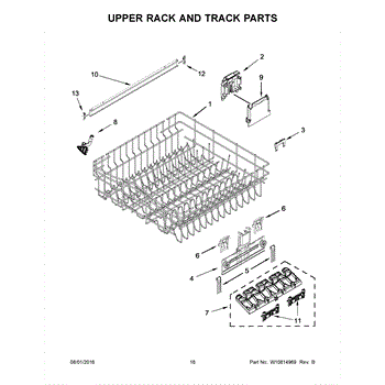 The Dishrack is an OEM part for Whirlpool dishwashers. This dishrack provides the structure and support needed to hold dishes, glasses, and utensils securely during the washing cycle. It is designed to maximize space and ensure that items are correctly positioned for optimal cleaning.
