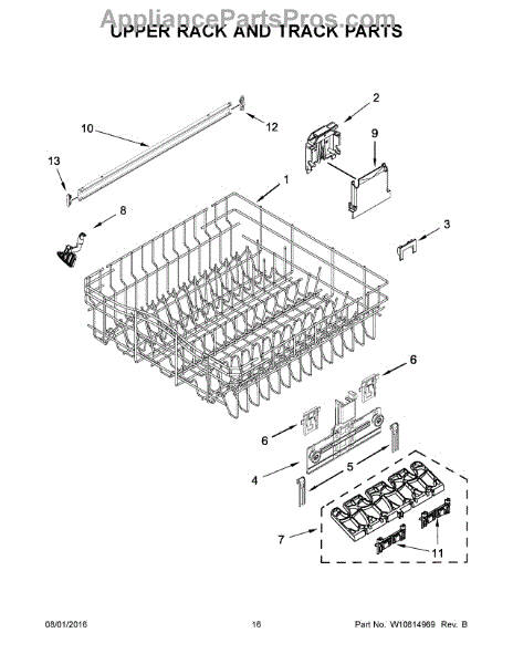 The Upper Dishrack Rail is an OEM replacement part for Whirlpool dishwashers. It guides upper racks in and out for easy access to dishes.