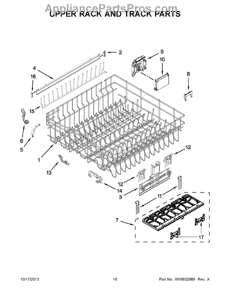 The Upper Dishrack Rail is an OEM replacement part for Whirlpool dishwashers. It guides upper racks in and out for easy access to dishes.