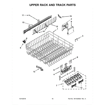 Upper dish rack assembly for dishwashers. Holds glasses, cups, and small items on the top level. Replace if cracked, warped, rusted, or deteriorating.