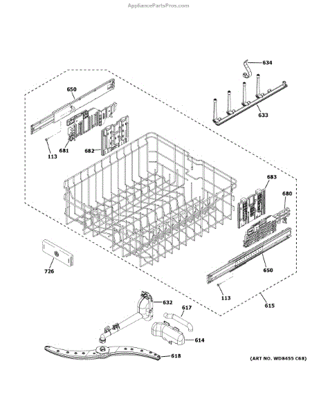 The Upper Rack Bracket Assembly is an OEM replacement part for GE dishwashers. It is located inside the dishwasher tub and functions to securely mount the upper dish rack. It allows for adjustable height positioning and prevents rack movement during washing. Causes of a bad upper rack bracket assembly can include cracks or breaks in the mounting points, stripped screw holes allowing rack sway, or deformities preventing proper seating. Symptoms of a bad upper rack bracket assembly include: