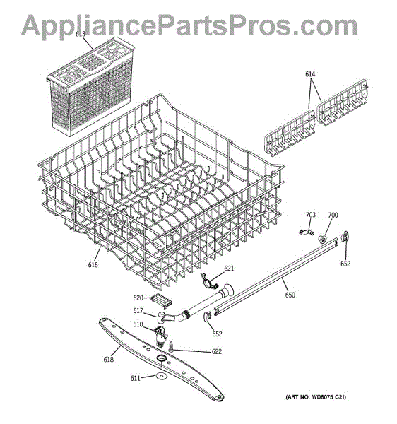 Replace your dishwasher's silverware basket if the original is cracked, broken, or missing. This basket holds utensils during wash cycles and installs in the lower rack.