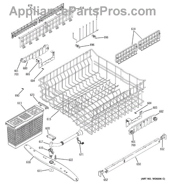 Parts for Ge EDW6160N00SS: 03 - Upper Rack Assembly Parts