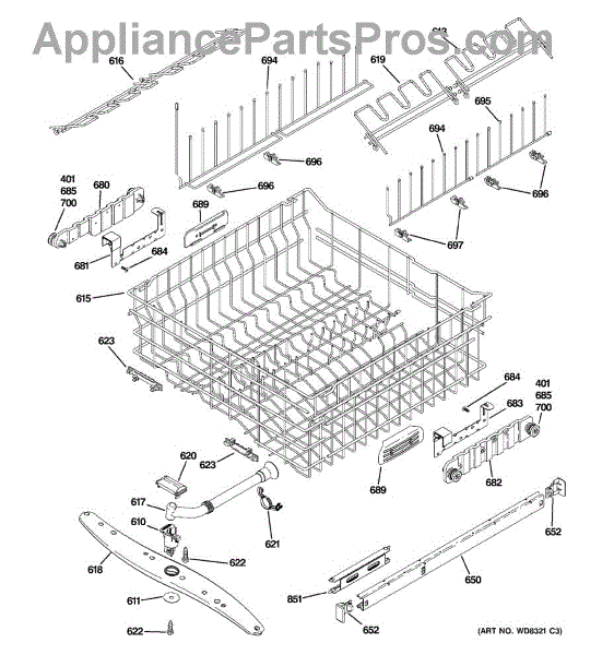 This part is an upper dishrack assembly for dishwashers. The purpose of this part is to hold dishes and cookware during the washing process. There are two dish racks per unit, and this particular dishrack goes on the top of the unit. The lower dishrack assembly is sold separately. Over time, the upper dishrack assembly may rust due to the coating breaking down and water corroding the metal. If this happens, the dishrack assembly will become brittle and less structurally sound and will need to be replaced. If the attached rails have broken and will not attach to the sides of the dishwasher and slide appropriately, this part may need to be replaced.This upper dishrack assembly is compatible with dishwashers that are manufactured by the GE and Whirlpool brands. This particular component is an OEM part that is sourced directly from the manufacturer and is sold individually.