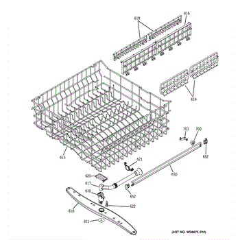 Parts for Ge GHDA650L15BB: 03 - Upper Rack Assembly Parts