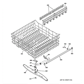 This middle spray arm assembly mounts at the center wash level and distributes pressurized water across both racks. Replacing a damaged or clogged arm restores even spray coverage and helps resolve weak cleaning performance, especially on the upper rack.