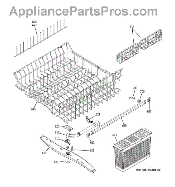 The Center Wash Arm Assembly is an OEM component specifically designed for GE dishwashers. It is the main wash arm responsible for spraying water across the center rack area during cycles to effectively clean dishes. The wash arm measures approximately 3/4” H x 2 ¾” W x 19” D.