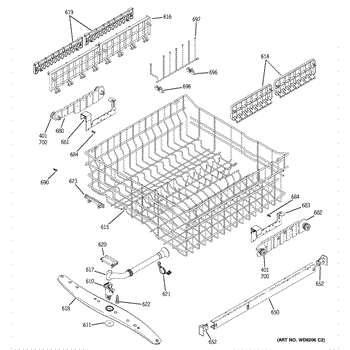 Replacement cup shelf for dishwasher dishrack. Installs on upper or lower rack to securely hold cups and small items. Needed when original is cracked or broken.