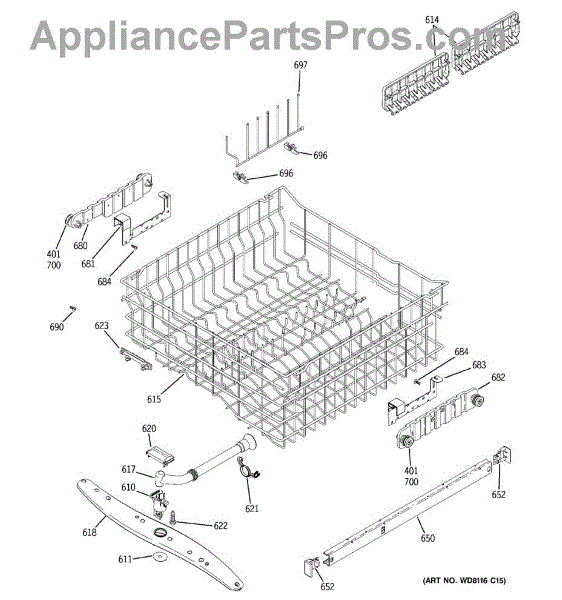 Parts for Ge GLD6900N20BB: 03 - Upper Rack Assembly Parts