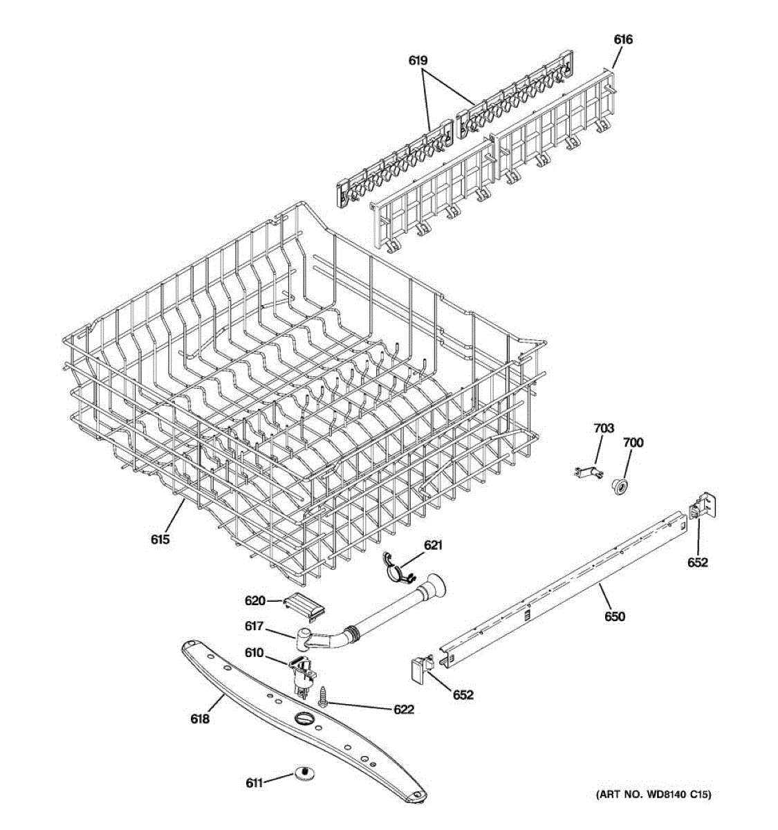 Parts for Ge GLD6908R10BB: 03 - Upper Rack Assembly Parts