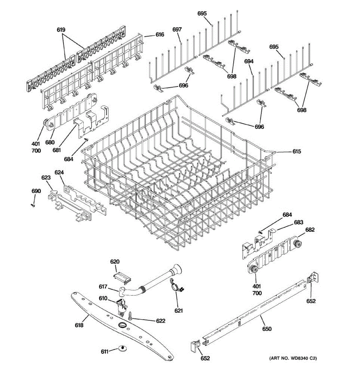 Upper dishrack roller kit with 4 nylon rollers and 4 axles. Replace broken, cracked, or worn rollers that prevent smooth rack gliding in your dishwasher.
