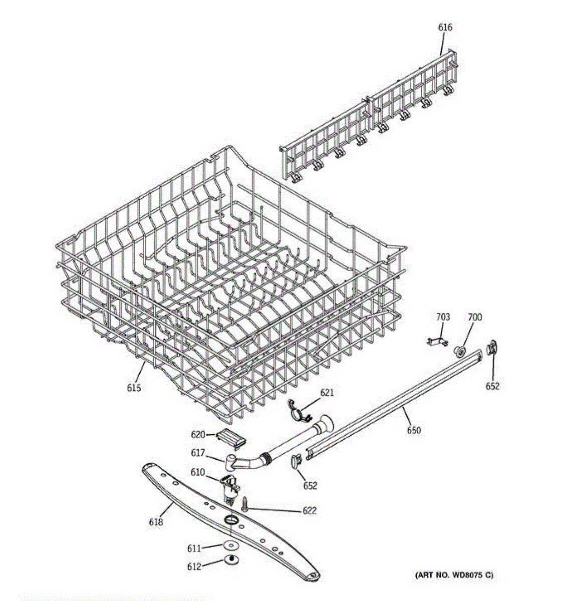 Parts for Ge GSD6300J00CC: Upper Rack Assembly Parts