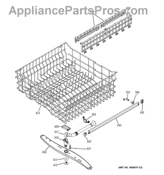 Parts for Ge GSD6500J00BB: 03 - Upper Rack Assembly Parts