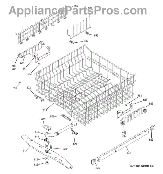 Upper dishrack roller kit with 4 nylon rollers and 4 axles. Replace broken, cracked, or worn rollers that prevent smooth rack gliding in your dishwasher.