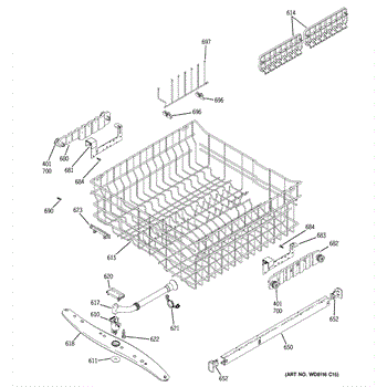 Replacement cup shelf for dishwasher dishrack. Installs on upper or lower rack to securely hold cups and small items. Needed when original is cracked or broken.