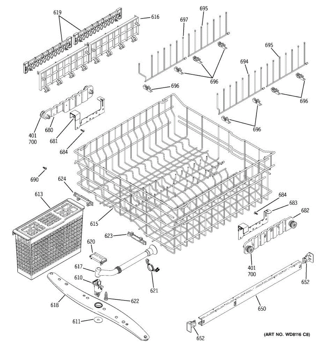 Parts for Ge PDW7700J03CC: 03 - Upper Rack Assembly Parts