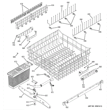 Dishwasher dishrack finger indexer snaps onto the rack to help guide and position dishes during the wash cycle. Replace if broken, cracked, or missing.