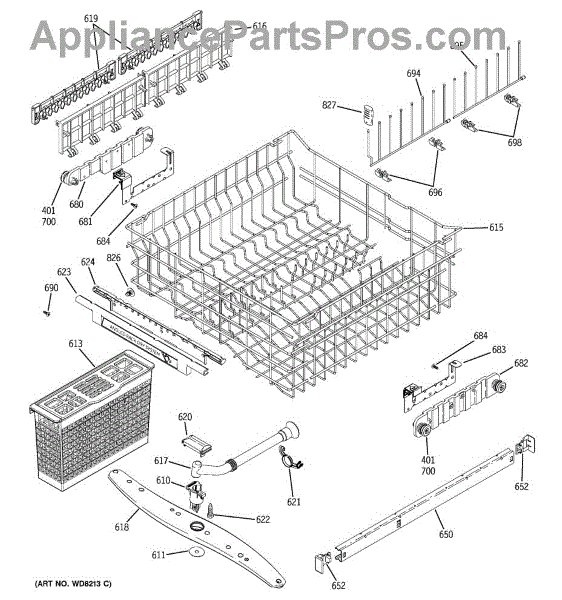 Parts for Ge PDW7900N00WW: 03 - Upper Rack Assembly Parts