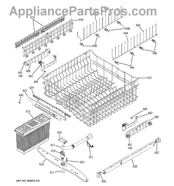 Parts for Ge PDW7900N15CC: 03 - Upper Rack Assembly Parts