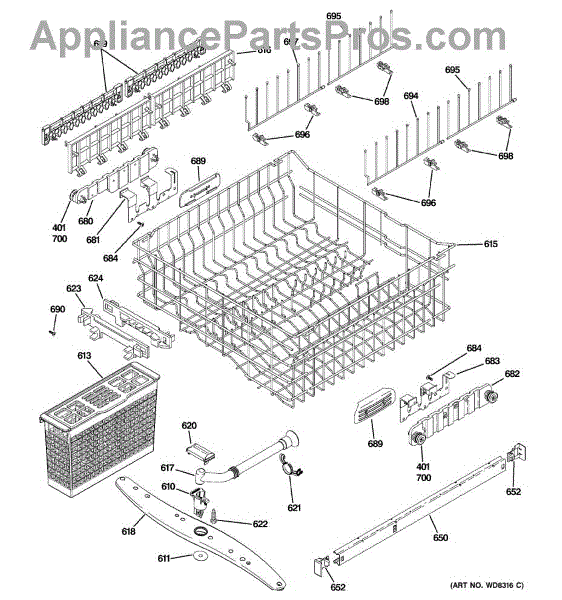 Parts for Ge PDW7900P00BB: 03 - Upper Rack Assembly Parts
