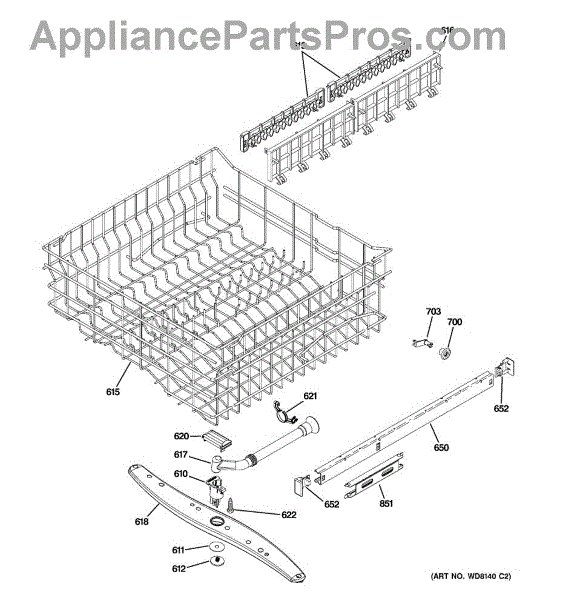 This part is an upper dishrack assembly for dishwashers. The purpose of this part is to hold dishes and cookware during the washing process. There are two dish racks per unit, and this particular dishrack goes on the top of the unit. The lower dishrack assembly is sold separately. Over time, the upper dishrack assembly may rust due to the coating breaking down and water corroding the metal. If this happens, the dishrack assembly will become brittle and less structurally sound and will need to be replaced. If the attached rails have broken and will not attach to the sides of the dishwasher and slide appropriately, this part may need to be replaced.This upper dishrack assembly is compatible with dishwashers that are manufactured by the GE and Whirlpool brands. This particular component is an OEM part that is sourced directly from the manufacturer and is sold individually.