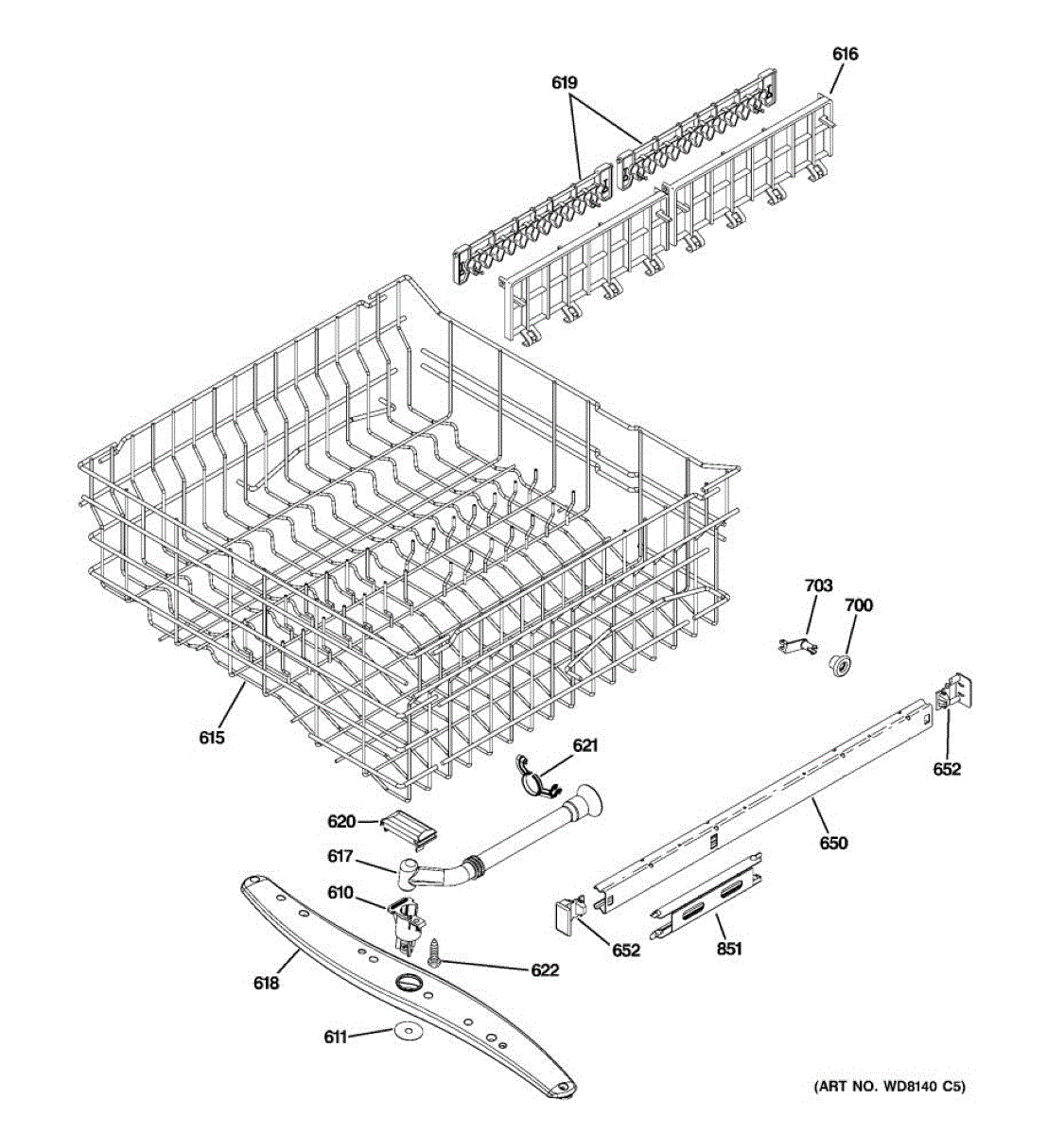 Parts for Ge PDW8211J10BB: 03 - Upper Rack Assembly Parts