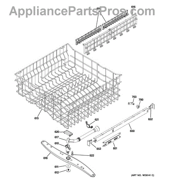 This part is an upper dishrack assembly for dishwashers. The purpose of this part is to hold dishes and cookware during the washing process. There are two dish racks per unit, and this particular dishrack goes on the top of the unit. The lower dishrack assembly is sold separately. Over time, the upper dishrack assembly may rust due to the coating breaking down and water corroding the metal. If this happens, the dishrack assembly will become brittle and less structurally sound and will need to be replaced. If the attached rails have broken and will not attach to the sides of the dishwasher and slide appropriately, this part may need to be replaced.This upper dishrack assembly is compatible with dishwashers that are manufactured by the GE and Whirlpool brands. This particular component is an OEM part that is sourced directly from the manufacturer and is sold individually.