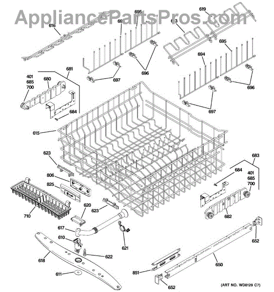 Parts for Ge PDW8700N20BB: 03 - Upper Rack Assembly Parts