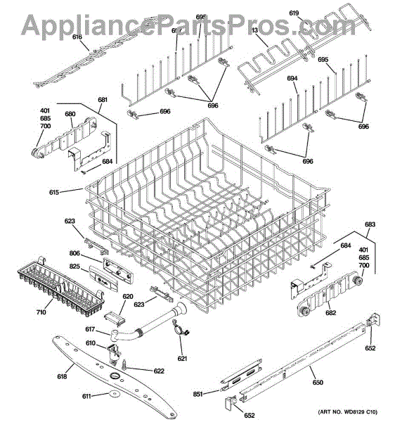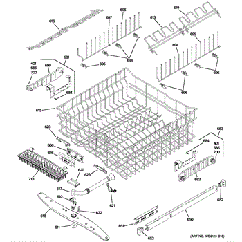 This part is an upper dishrack assembly for dishwashers. The purpose of this part is to hold dishes and cookware during the washing process. There are two dish racks per unit, and this particular dishrack goes on the top of the unit. The lower dishrack assembly is sold separately. Over time, the upper dishrack assembly may rust due to the coating breaking down and water corroding the metal. If this happens, the dishrack assembly will become brittle and less structurally sound and will need to be replaced. If the attached rails have broken and will not attach to the sides of the dishwasher and slide appropriately, this part may need to be replaced.This upper dishrack assembly is compatible with dishwashers that are manufactured by the GE and Whirlpool brands. This particular component is an OEM part that is sourced directly from the manufacturer and is sold individually.