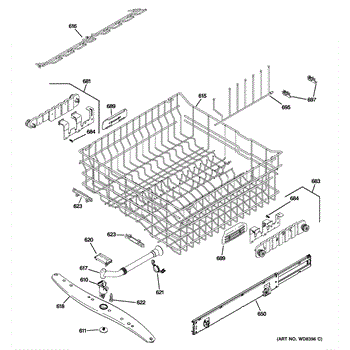 Right-hand lever rack assembly for dishwashers. Replaces worn or broken lever support components. Restores smooth lever movement and secure latch operation.