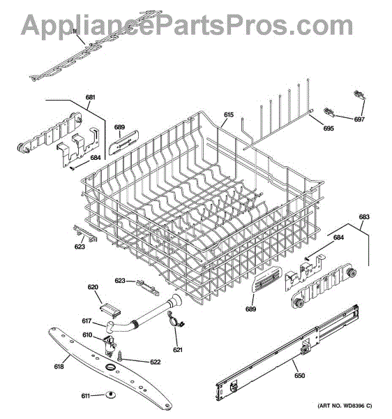 Replacement finger indexer for dishwasher dishrack. Installs on the right side to secure and guide dish rack movement. Order if broken or missing.