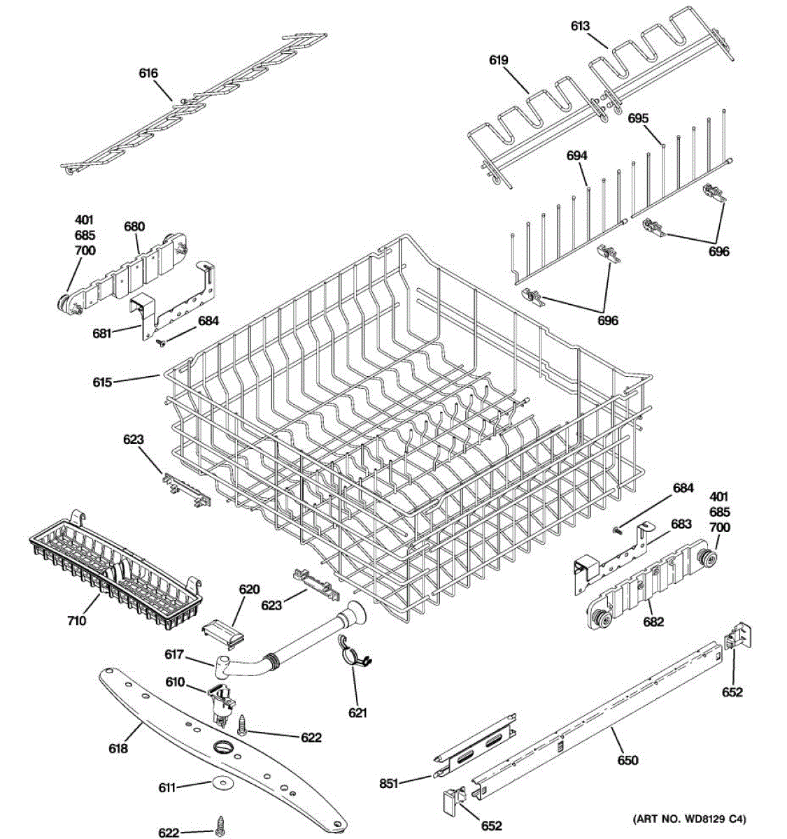 Parts for Ge ZBD0700K03II: 03 - Upper Rack Assembly Parts