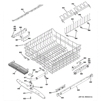 This part is an upper dishrack assembly for dishwashers. The purpose of this part is to hold dishes and cookware during the washing process. There are two dish racks per unit, and this particular dishrack goes on the top of the unit. The lower dishrack assembly is sold separately. Over time, the upper dishrack assembly may rust due to the coating breaking down and water corroding the metal. If this happens, the dishrack assembly will become brittle and less structurally sound and will need to be replaced. If the attached rails have broken and will not attach to the sides of the dishwasher and slide appropriately, this part may need to be replaced.This upper dishrack assembly is compatible with dishwashers that are manufactured by the GE and Whirlpool brands. This particular component is an OEM part that is sourced directly from the manufacturer and is sold individually.