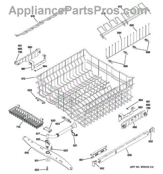 This part is an upper dishrack assembly for dishwashers. The purpose of this part is to hold dishes and cookware during the washing process. There are two dish racks per unit, and this particular dishrack goes on the top of the unit. The lower dishrack assembly is sold separately. Over time, the upper dishrack assembly may rust due to the coating breaking down and water corroding the metal. If this happens, the dishrack assembly will become brittle and less structurally sound and will need to be replaced. If the attached rails have broken and will not attach to the sides of the dishwasher and slide appropriately, this part may need to be replaced.This upper dishrack assembly is compatible with dishwashers that are manufactured by the GE and Whirlpool brands. This particular component is an OEM part that is sourced directly from the manufacturer and is sold individually.