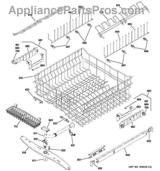This part is an upper dishrack assembly for dishwashers. The purpose of this part is to hold dishes and cookware during the washing process. There are two dish racks per unit, and this particular dishrack goes on the top of the unit. The lower dishrack assembly is sold separately. Over time, the upper dishrack assembly may rust due to the coating breaking down and water corroding the metal. If this happens, the dishrack assembly will become brittle and less structurally sound and will need to be replaced. If the attached rails have broken and will not attach to the sides of the dishwasher and slide appropriately, this part may need to be replaced.This upper dishrack assembly is compatible with dishwashers that are manufactured by the GE and Whirlpool brands. This particular component is an OEM part that is sourced directly from the manufacturer and is sold individually.