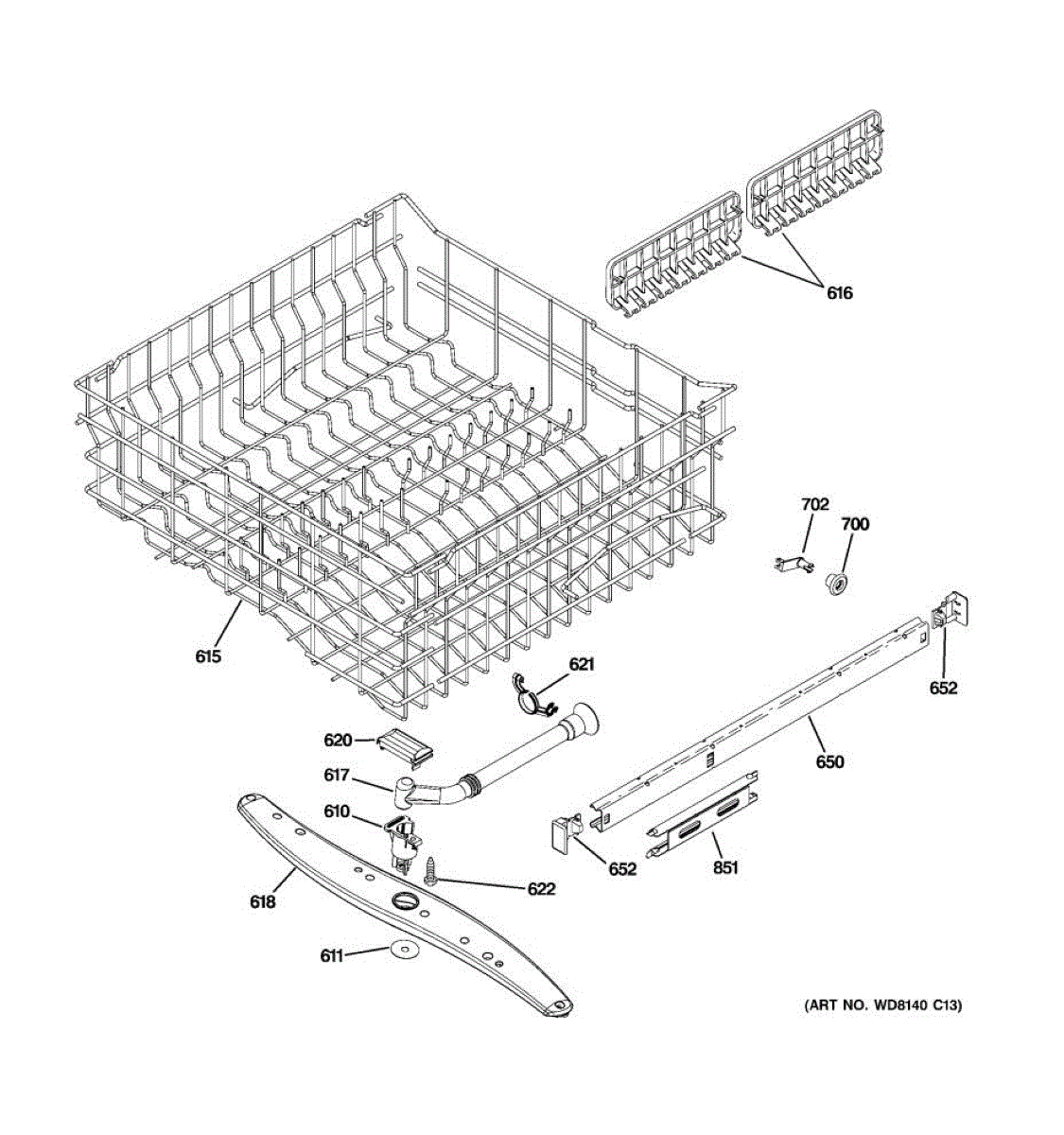 Parts for Ge ZBD6910P30BB: 03 - Upper Rack Assembly Parts