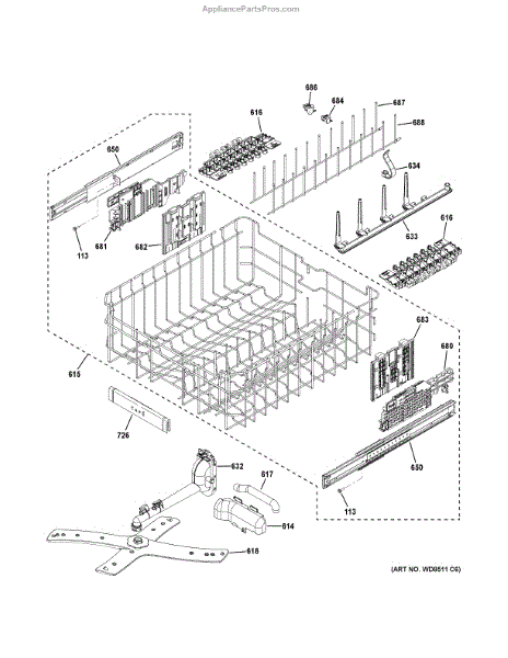 Direct-fit upper rack for dishwashers. Replaces cracked, broken, or worn top-level rack assembly. Restores secure loading for cups, glasses, and bowls.