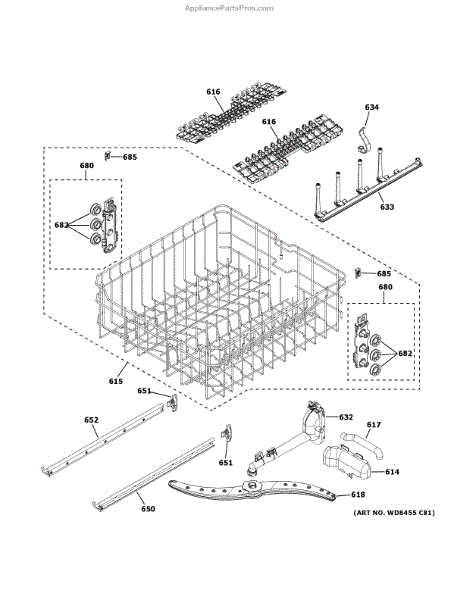 Parts for Ge GDT605PGM5WW: Upper Rack Assembly Parts