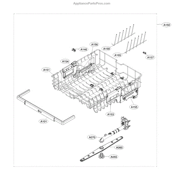 The Rack Assembly is an OEM part for LG dishwashers. It is the rack that holds dishes, glassware, utensils, and cookware during the wash cycle.