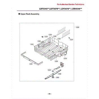 Upper rack assembly for dishwashers. Installs in the top position to hold cups, glasses, and small dishes. Replace if cracked, broken, or wheels are worn.