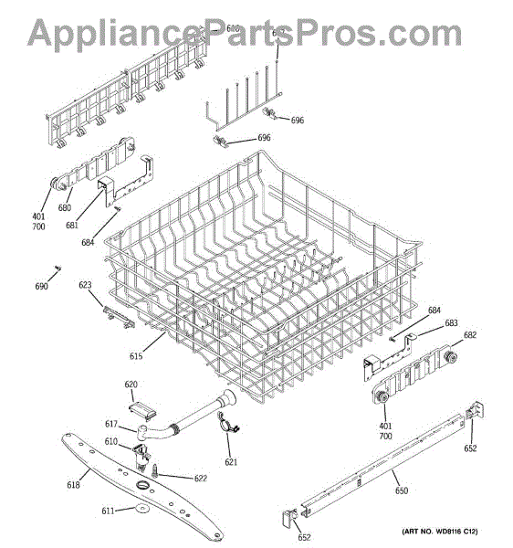 Replacement cup shelf for dishwasher dishrack. Installs on upper or lower rack to securely hold cups and small items. Needed when original is cracked or broken.