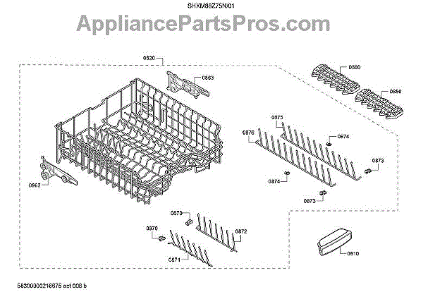 Parts for Bosch SHXM88Z75N/01: Upper Rack / Cup Rack Parts