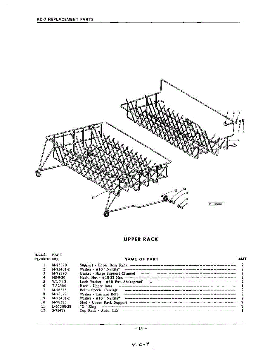 Parts for Kitchenaid KDA7: 14 - Upper Rack Parts