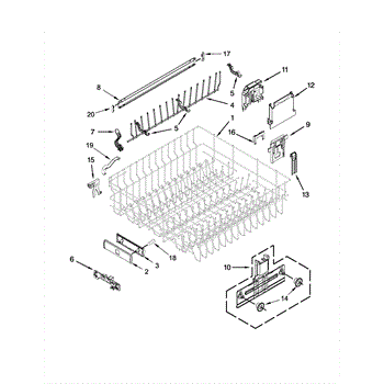 The Upper Dish Rack is an OEM replacement part for Whirlpool dishwashers. Located on the upper level inside the tub, it provides an area for washing smaller dishes, utensils, and glasses.